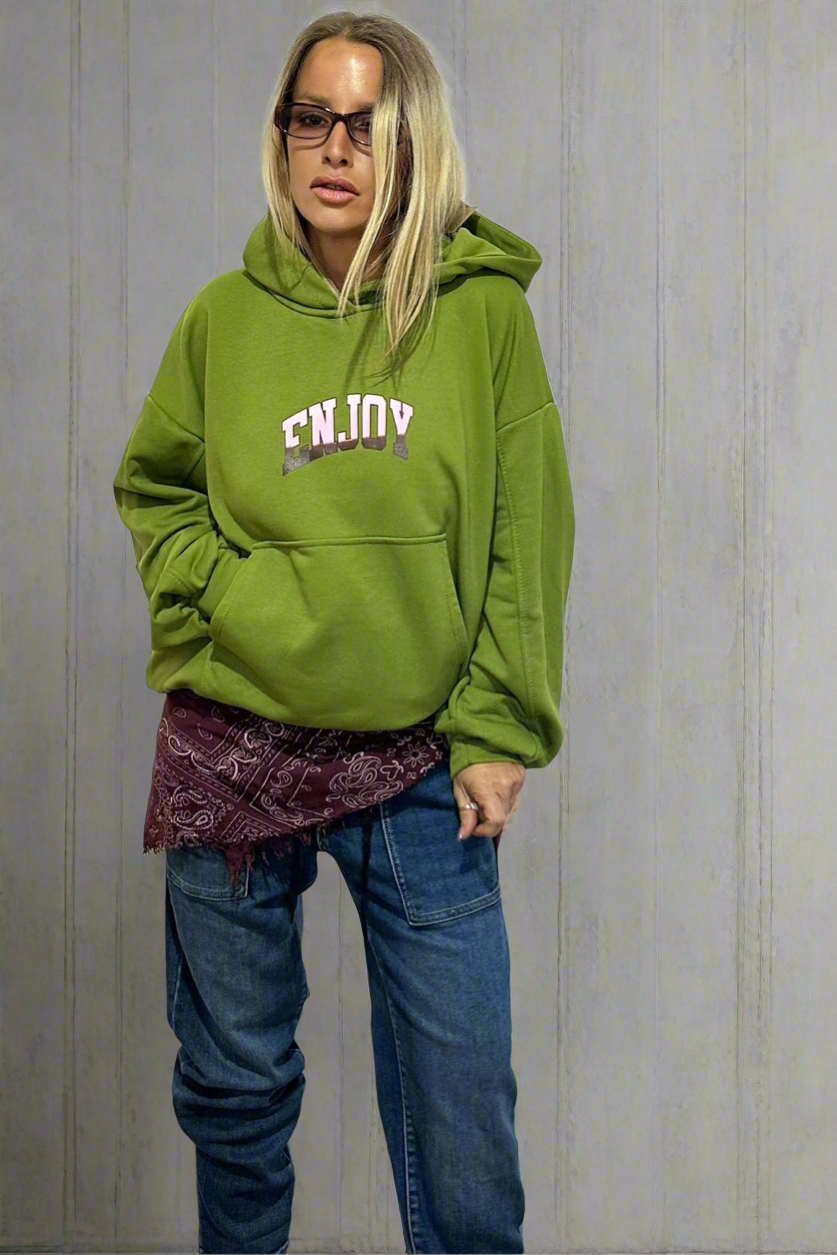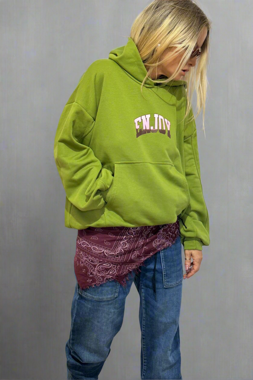 בגוון ירוק עז בשילוב הלוגו ENJOY הוא מוסיף טוויסט צעיר ואופטימי לכל לוק.