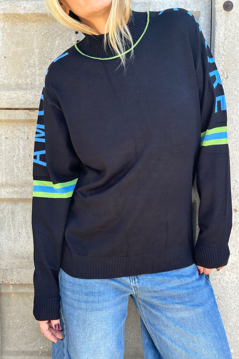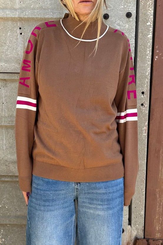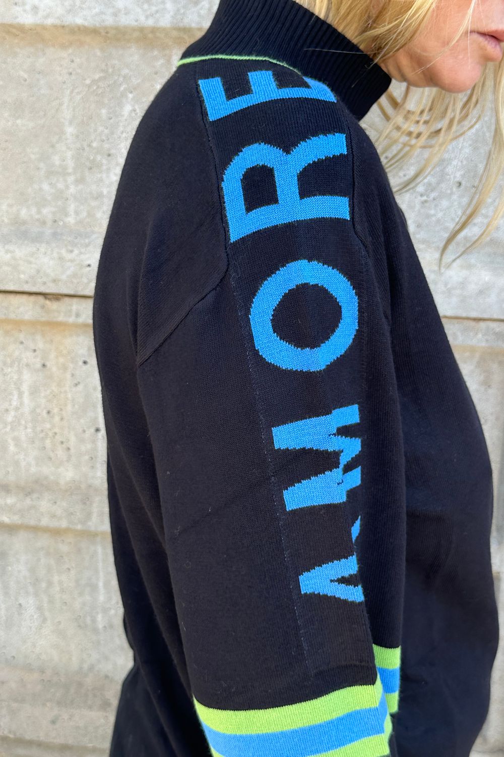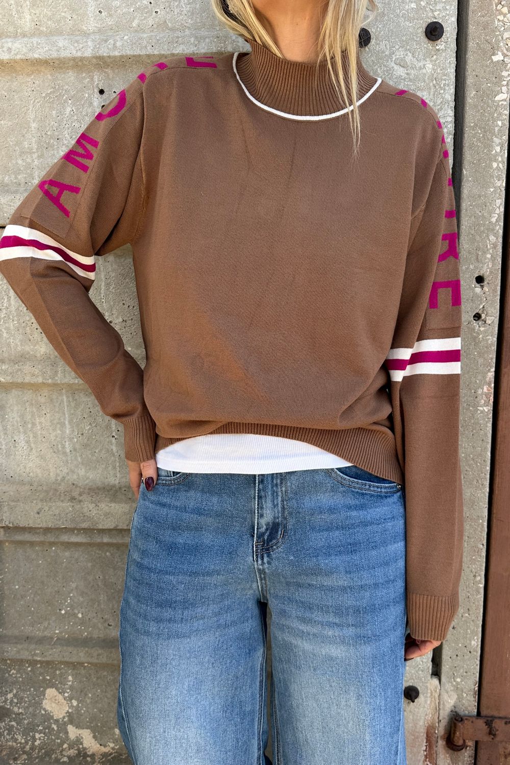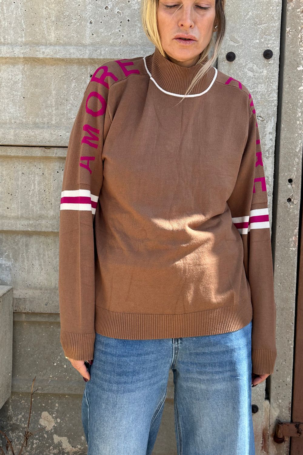 גזרה נינוחה ונעימה, עם כתפיים מודגשות וכיתוב AMOUR לאורך השרוולים שמוסיף סטייל ומסר.