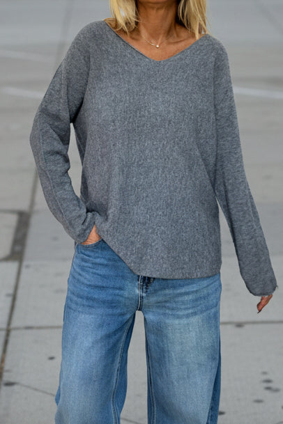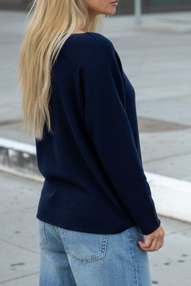 סריג קלאסי ונוח מפתח וי בגזרת וואן סייז מחמיאה, המתאימה למגוון מבני גוף. עיצוב נקי ועל-זמני עם ושרוולים ארוכים – פריט מושלם ללוק יומיומי, אלגנטי וקליל