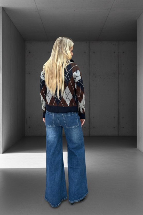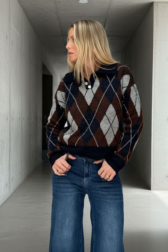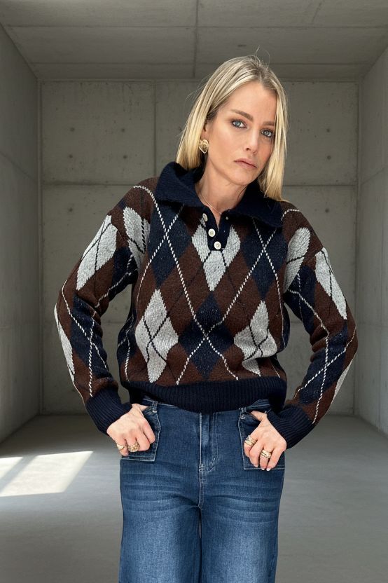 סריג וואן סייז בהדפס ארגייל עם צווארון
