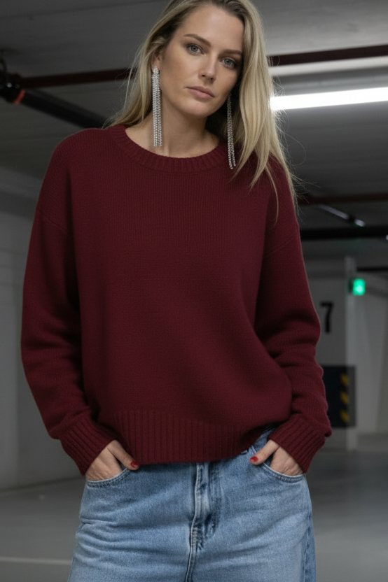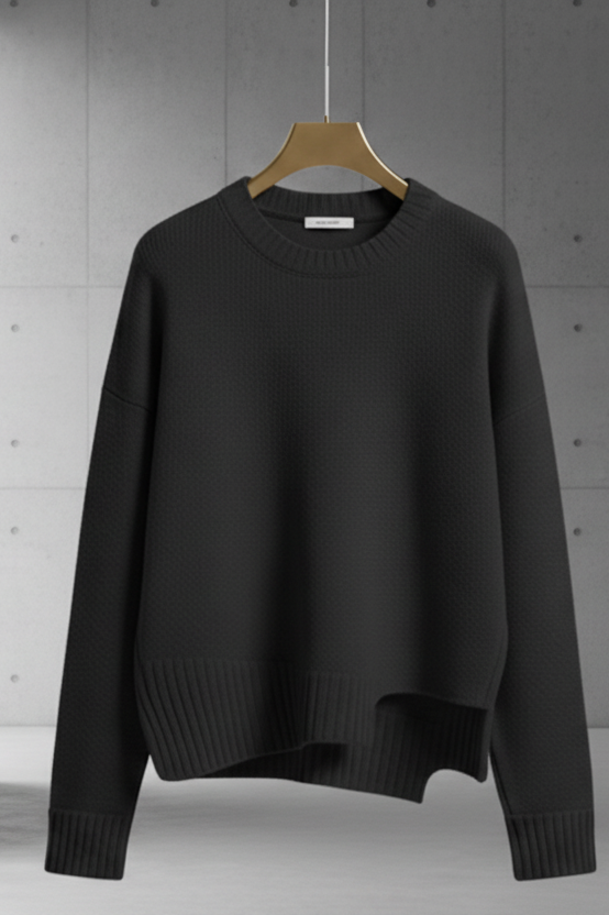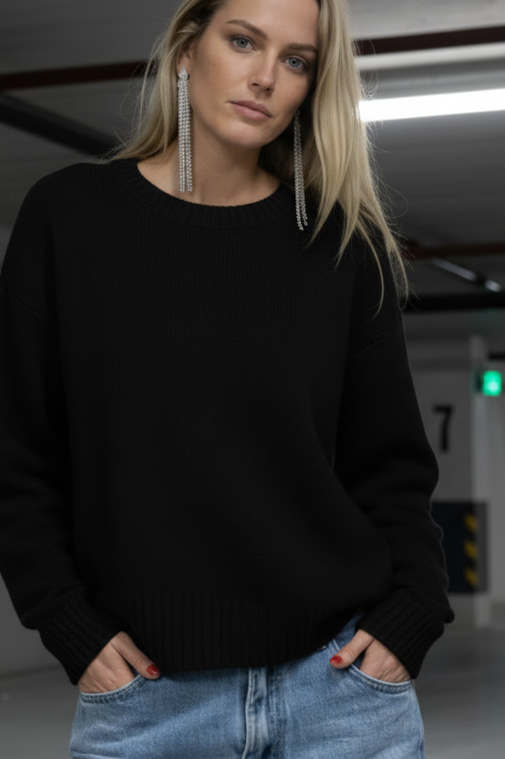 סריג רך ונעים למגע בגזרת אוברסייז מחמיאה, עם נפילה טבעית ואלגנטית על הגוף.