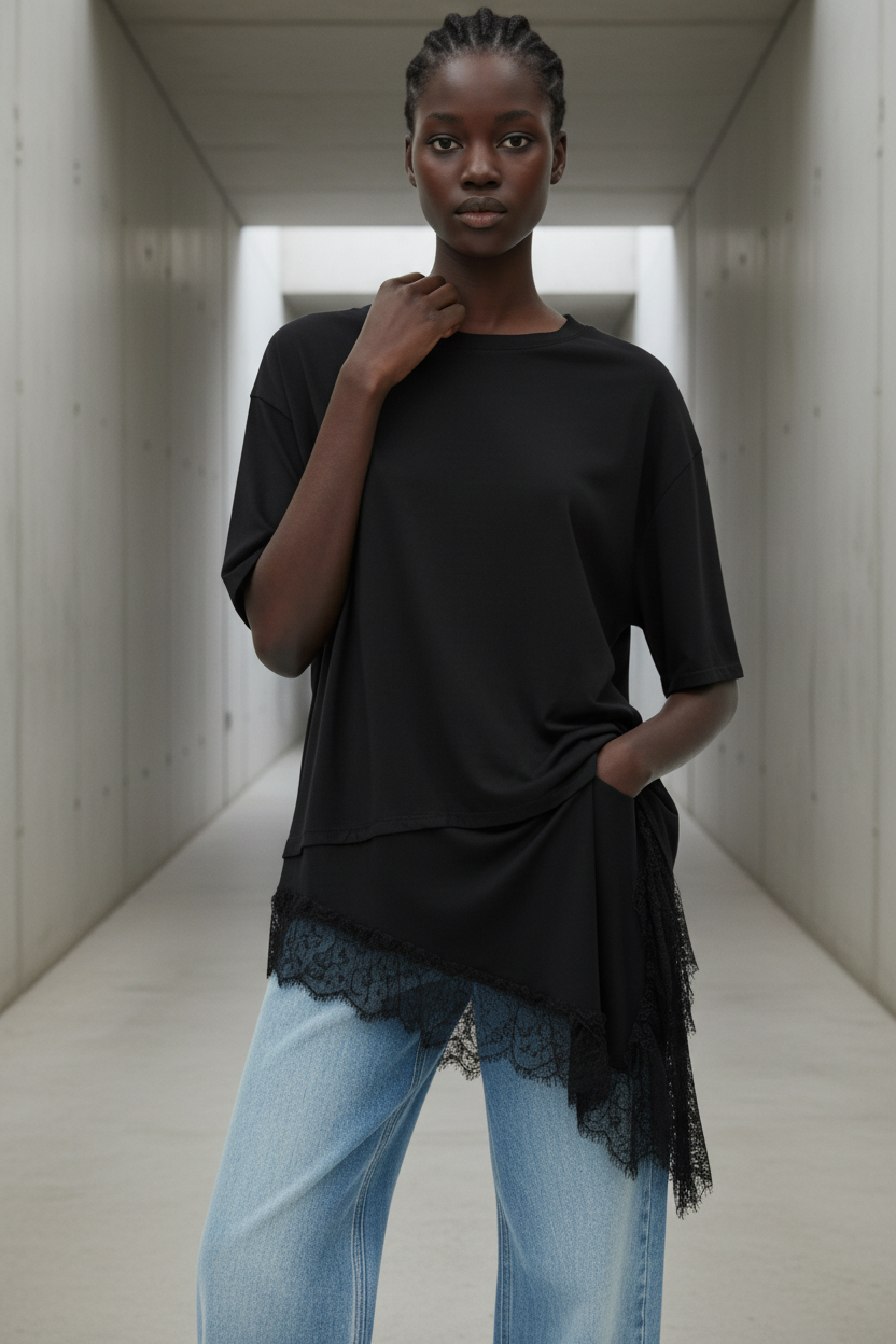 Lace Edge Oversized Tee