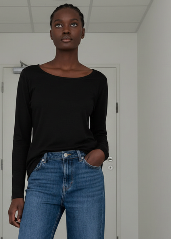 גזרה מחמיאה שמתאימה ללבישה לבד או כשכבת בסיס מתחת לסריג, ג’קט או מעיל – פריט על־זמני שחוזרים אליו שוב ושוב.