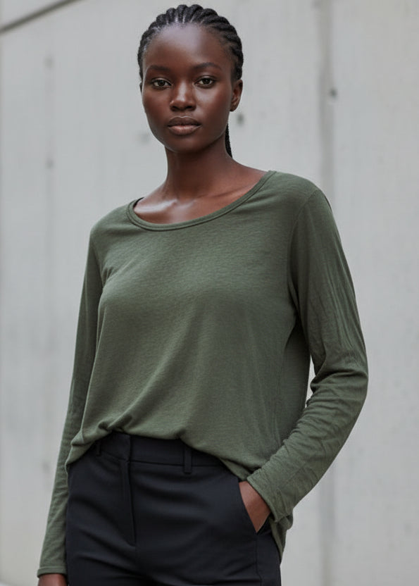 גזרה מחמיאה שמתאימה ללבישה לבד או כשכבת בסיס מתחת לסריג, ג’קט או מעיל – פריט על־זמני שחוזרים אליו שוב ושוב.