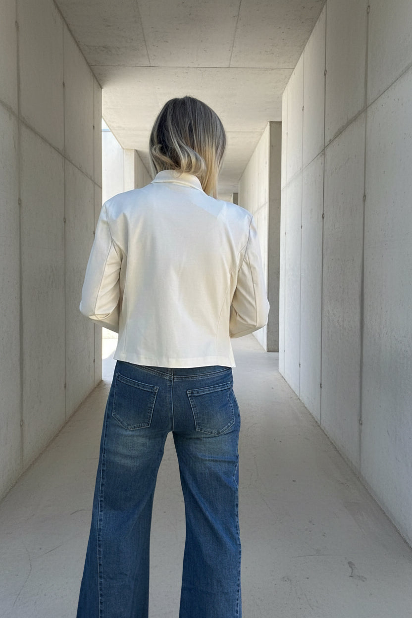 ג׳קט קליל  ומדויק בגזרת בוקסה מחמיאה, עשוי מבד כותנה איכותי עם מראה נקי ומלוטש.
