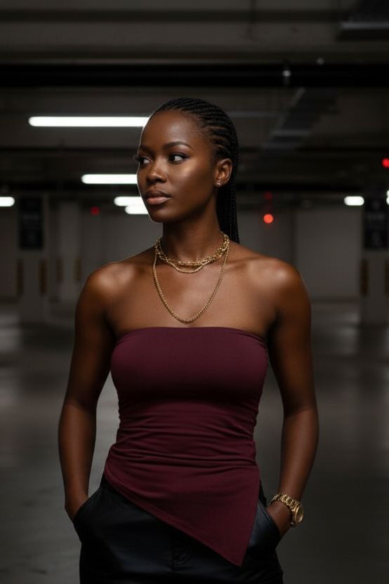 טופ סטרפלס מחמיא ומדויק, עשוי מבד אלסטי איכותי שנמתח ומתלבש בצורה מושלמת על הגוף. הגזרה צמודה ומעצבת, עם חלק תחתון אלכסוני שמאריך את קו הגוף ויוצר מראה נשי, מחוטב וסטייליסטי. מתאים למידות 34–40 בזכות הגמישות של הבד.