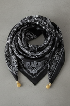 מטפחת בנדנה מרובע בדוגמת פייזלי קלאסית, בגוון אדום עז ומשדרג.