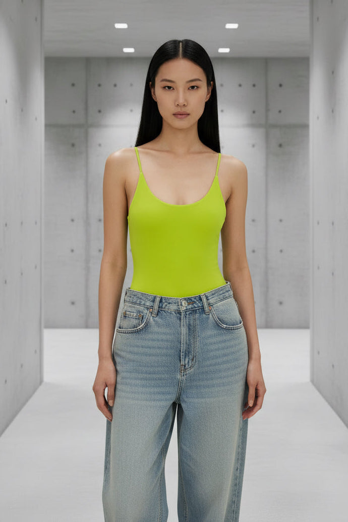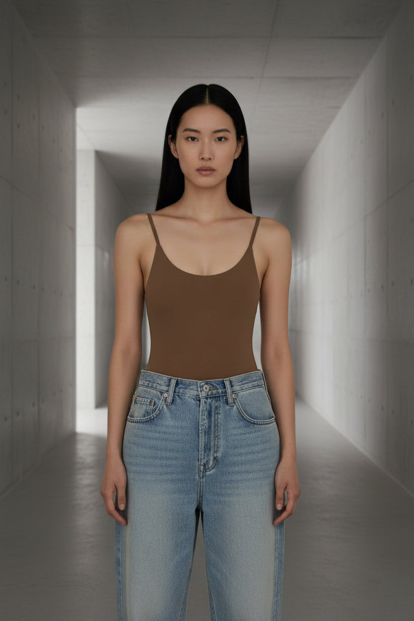 בגד גוף בגזרת כתפיות דקיקות, צמוד ונוח, עשוי בד רך ונמתח שנצמד לגוף בצורה מחמיאה.