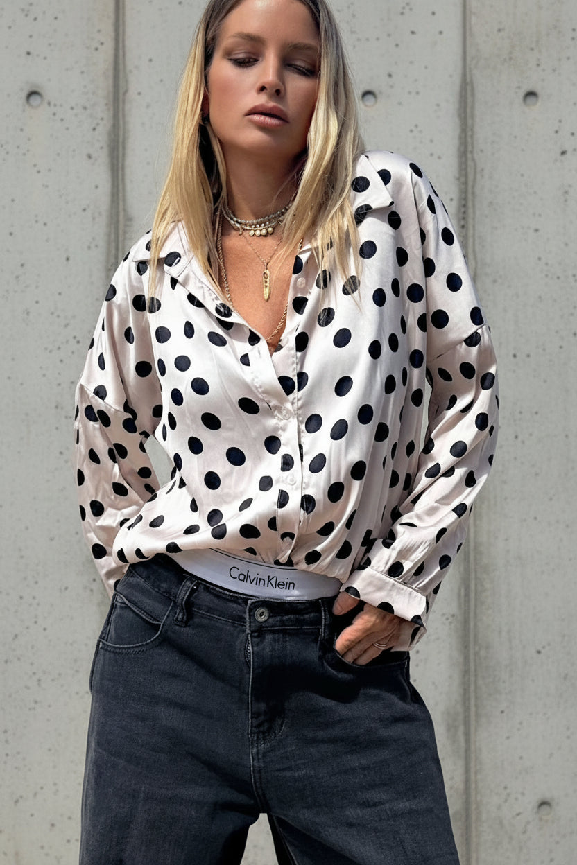 חולצה מכופתרת בהדפס נקודות קלאסי ושיקי