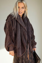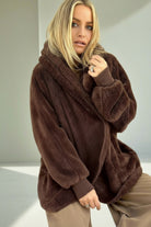 מעיל פליז עם כובע חום שוקולד