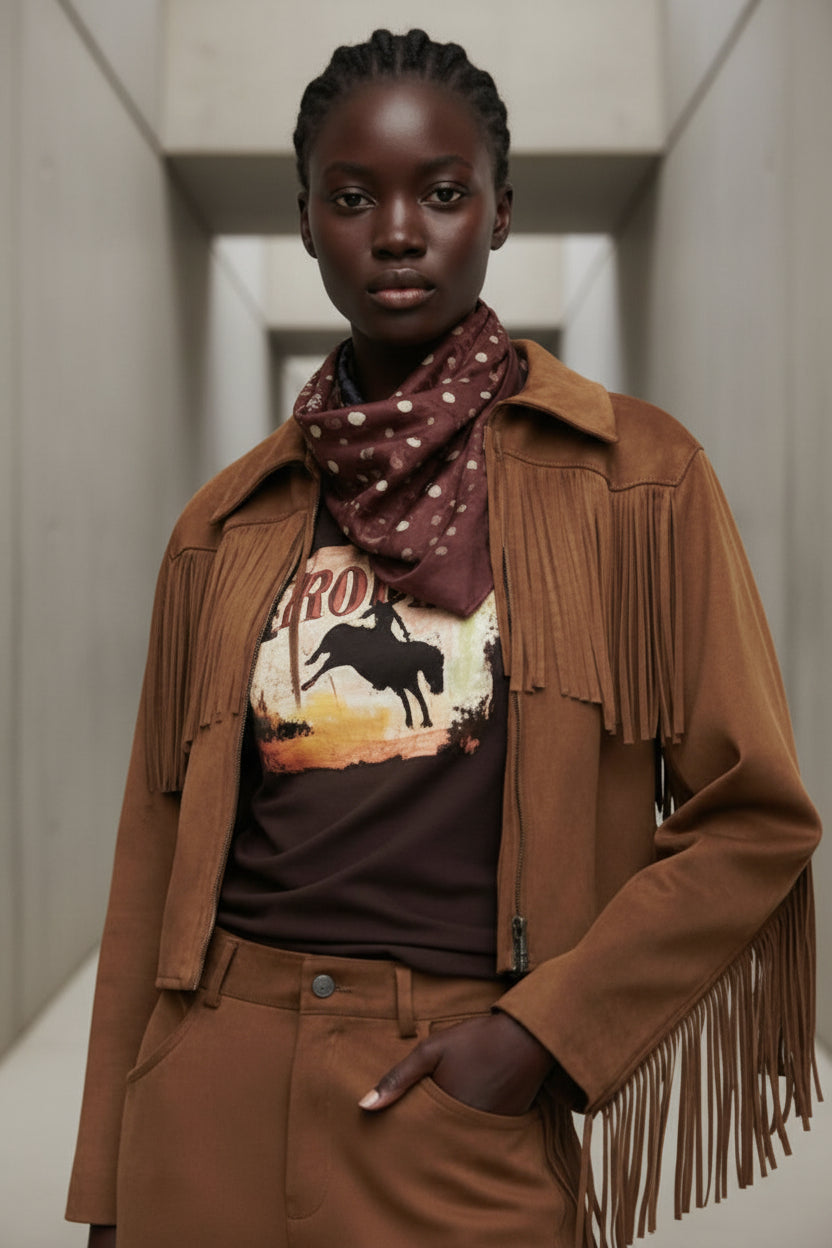 הג׳קט suede franze הוא פריט איקוני שמשלב בין וייב בוהמייני לאורבניות עדכנית.