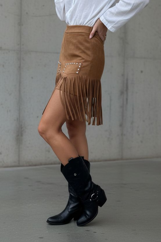 מכנס חצאית עשוי בד זמש עם מתיחה
