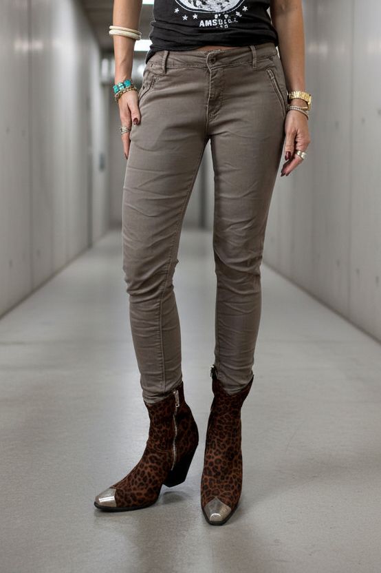 מכנס בגזרת סקיני גוןן חום מעושן,