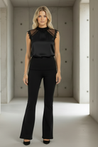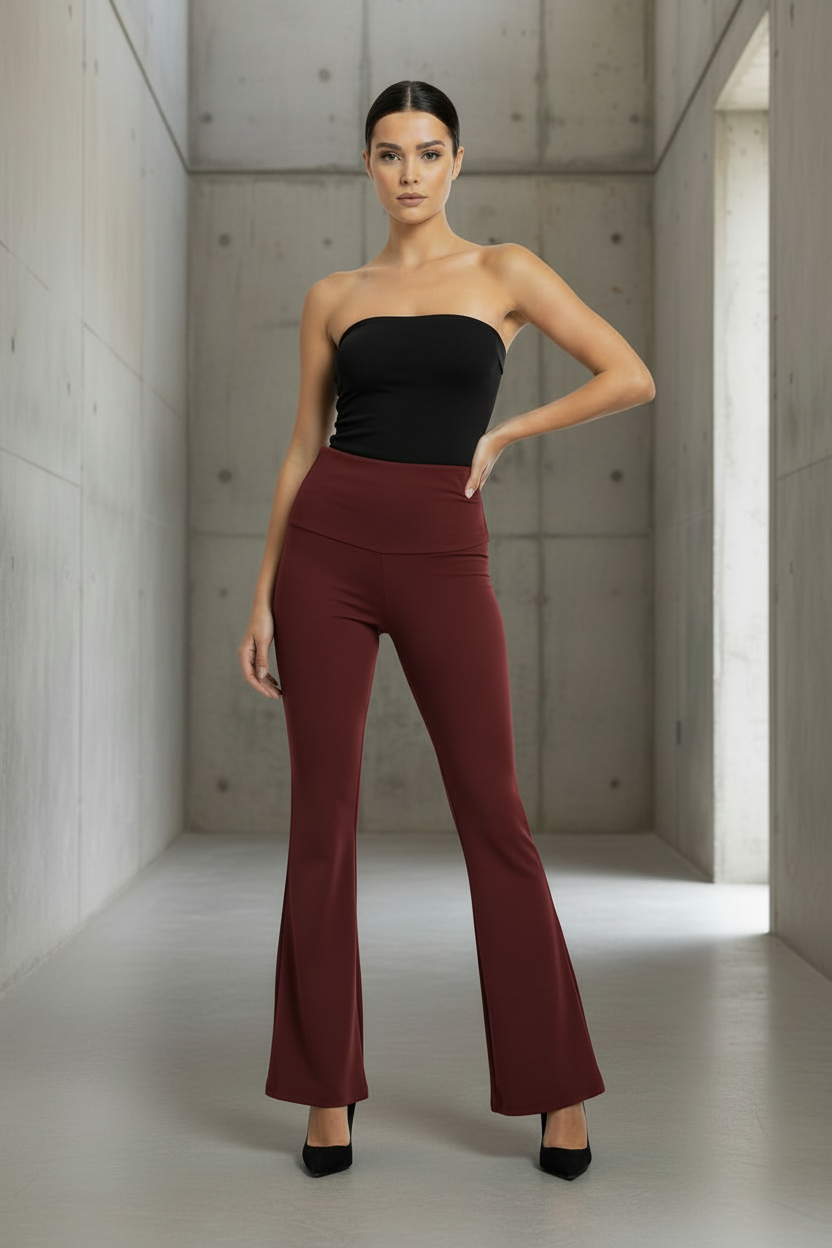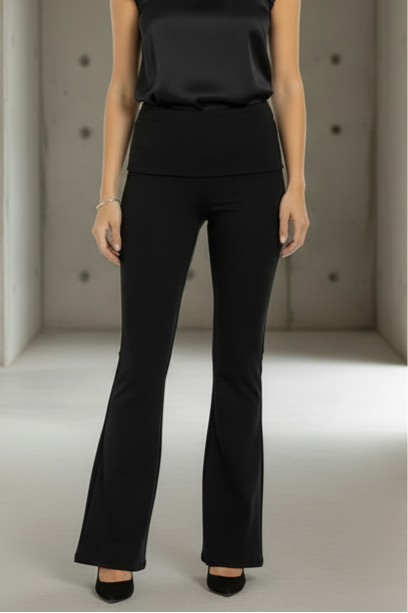 מכנס מחטב בגזרה מחמיאה, עשוי בד נמתח ומחטב שמדגיש את קווי הגוף ויוצר מראה אלגנטי וארוך.