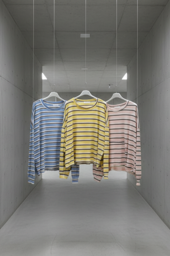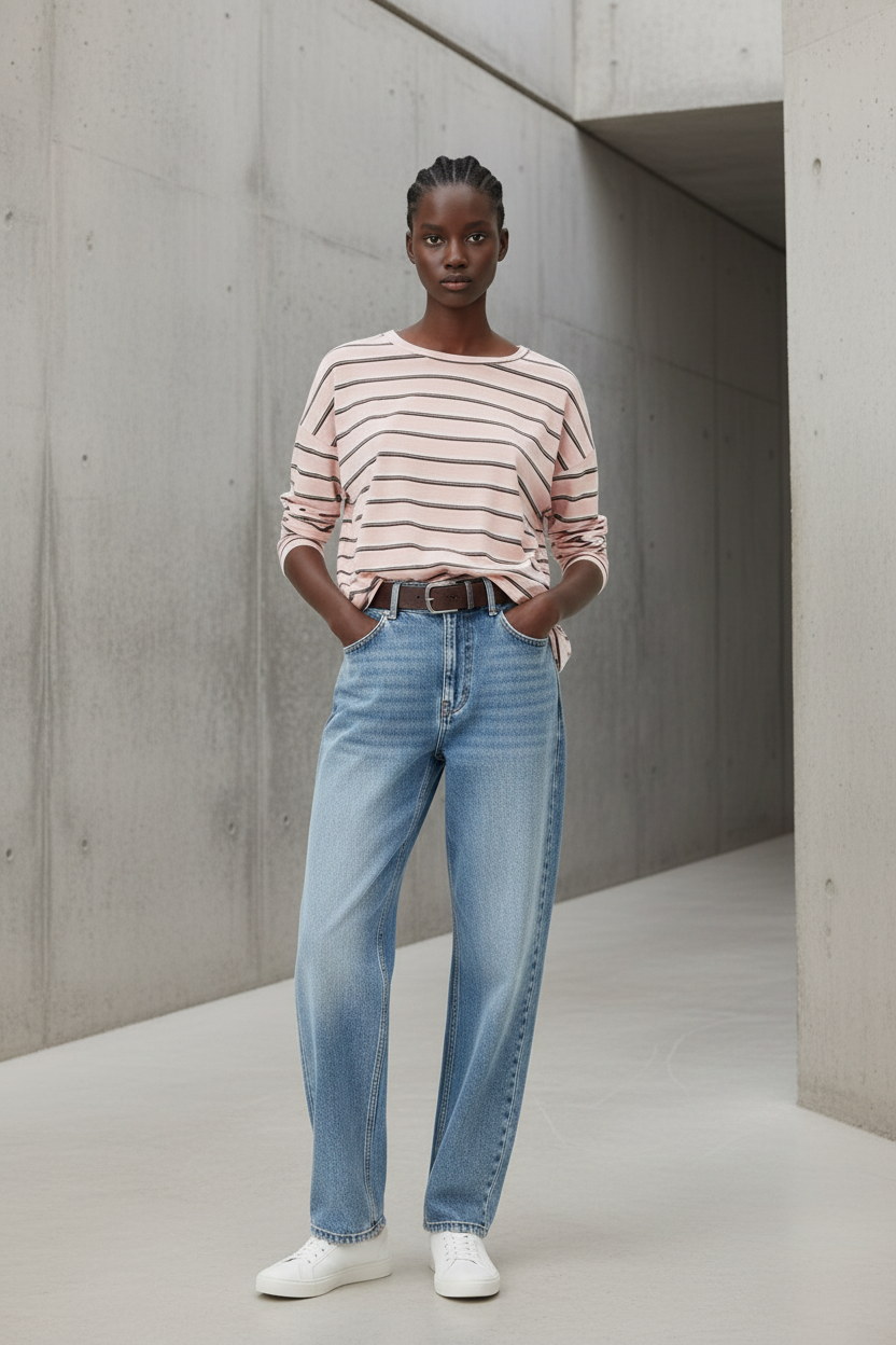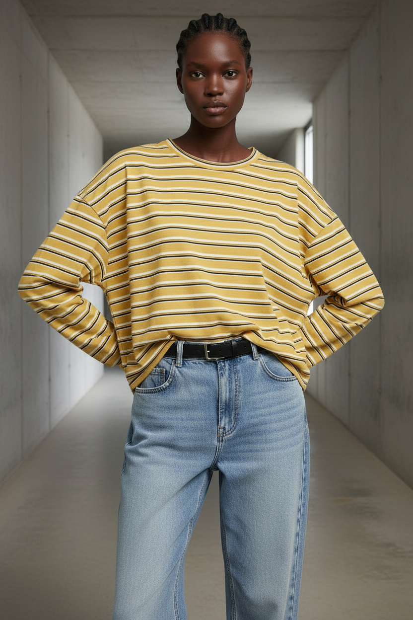 חולצת פסים קלילה בגזרת אוברסייז עם שרוולים ארוכים וצווארון עגול