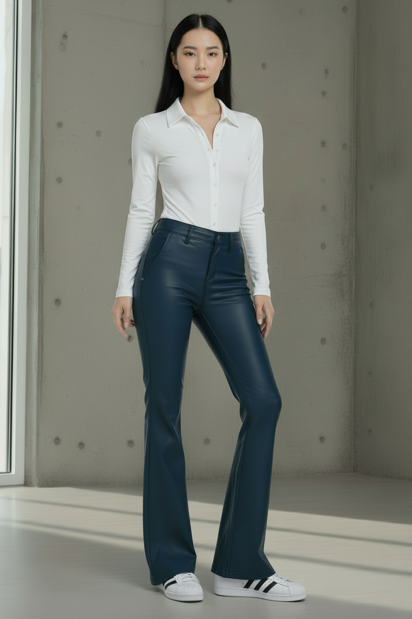 הגזרה יושבת גבוה על המותן, מאריכה את הרגליים ויוצרת מראה סופר נשי, נקי ומדויק.