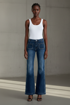 ג’ינס מחמיא בגזרת Flare מתרחבת, עם נוכחות חזקה וסטייל על־זמני.