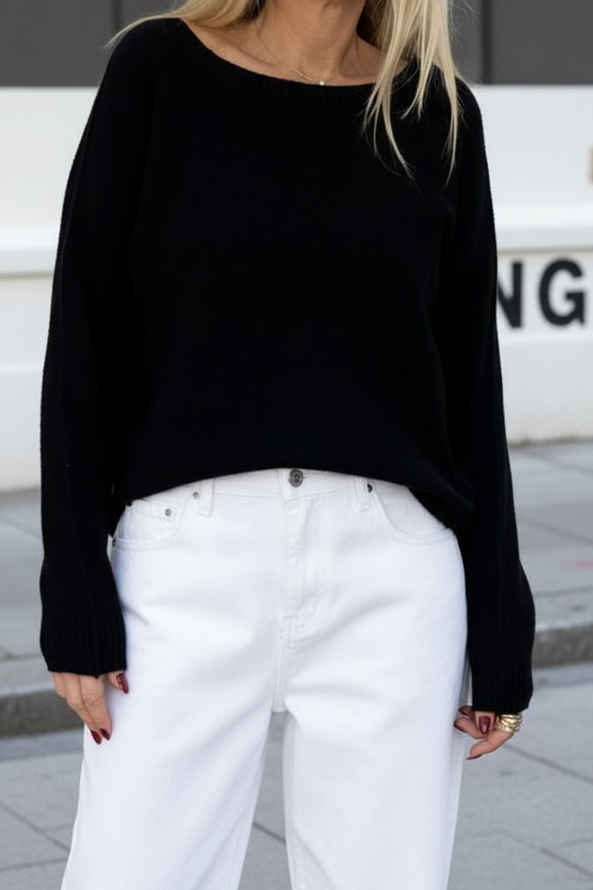 סריג קלאסי ונוח בגזרv מחמיאה, המתאימה למגוון מבני גוף. עיצוב נקי ועל-זמני עם מפתח צוואר עגול ושרוולים ארוכים – פריט מושלם ללוק יומיומי, אלגנטי וקליל.