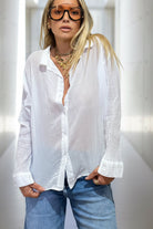 חולצה מכופתרת עשויה בד דקיק ורך מ־100% כותנה.