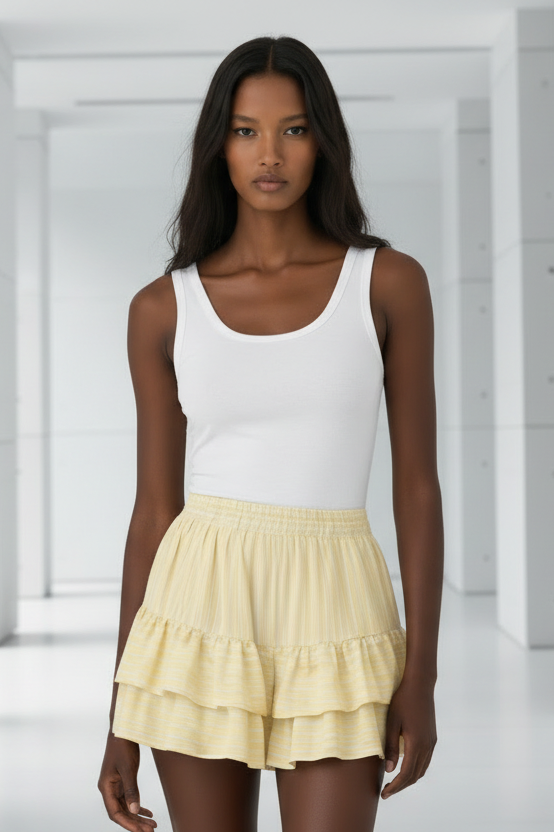 חצאית מכנס קצרה ונשית עם גזרת שכבות רכה ותנועתית שיוצרת מראה קיצי, קליל ומלא סטייל.