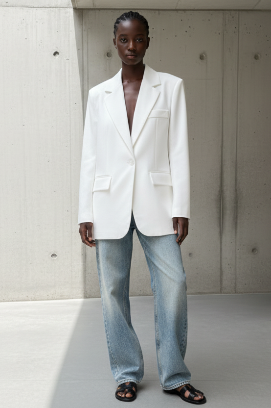 ז׳קט בגזרת דדי מושלמת עם נפילה מדויקת ולוק מחויט-נונשלנטי.