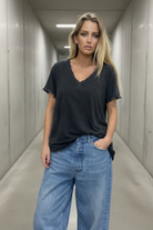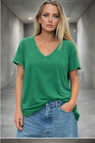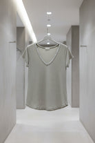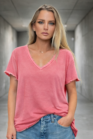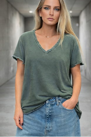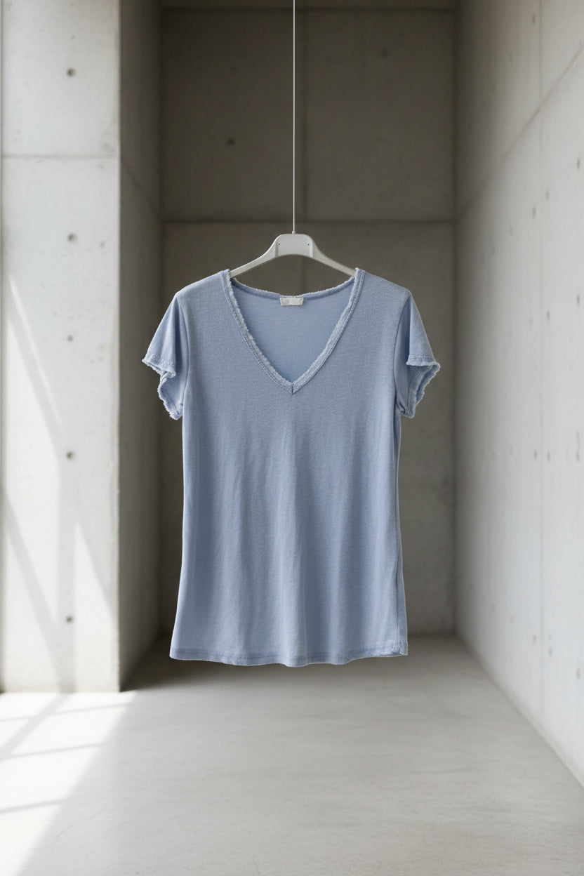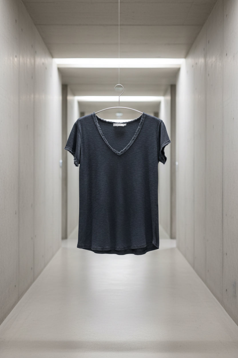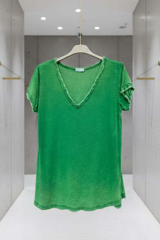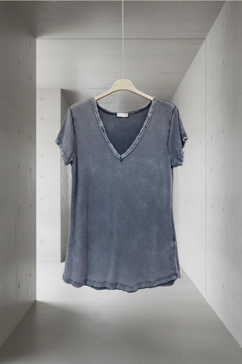 טי־שירט איכותית 100% כותנה, עשויה בשטיפת ווש איטלקית ייחודית שמעניקה מראה רך, נינוח וקז’ואלי.
