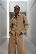 החולצה בגזרה משוחררת עם כפתורים קדמיים – מושלמת ללבישה סגורה כסט או פתוחה מעל טופ.