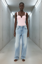 בגד גוף מחטב עם מפתח לב עמוק וקפלונים עדינים באזור החזה שמעצבים ומדגישים את הסילואטה בצורה נשית ומחמיאה.
