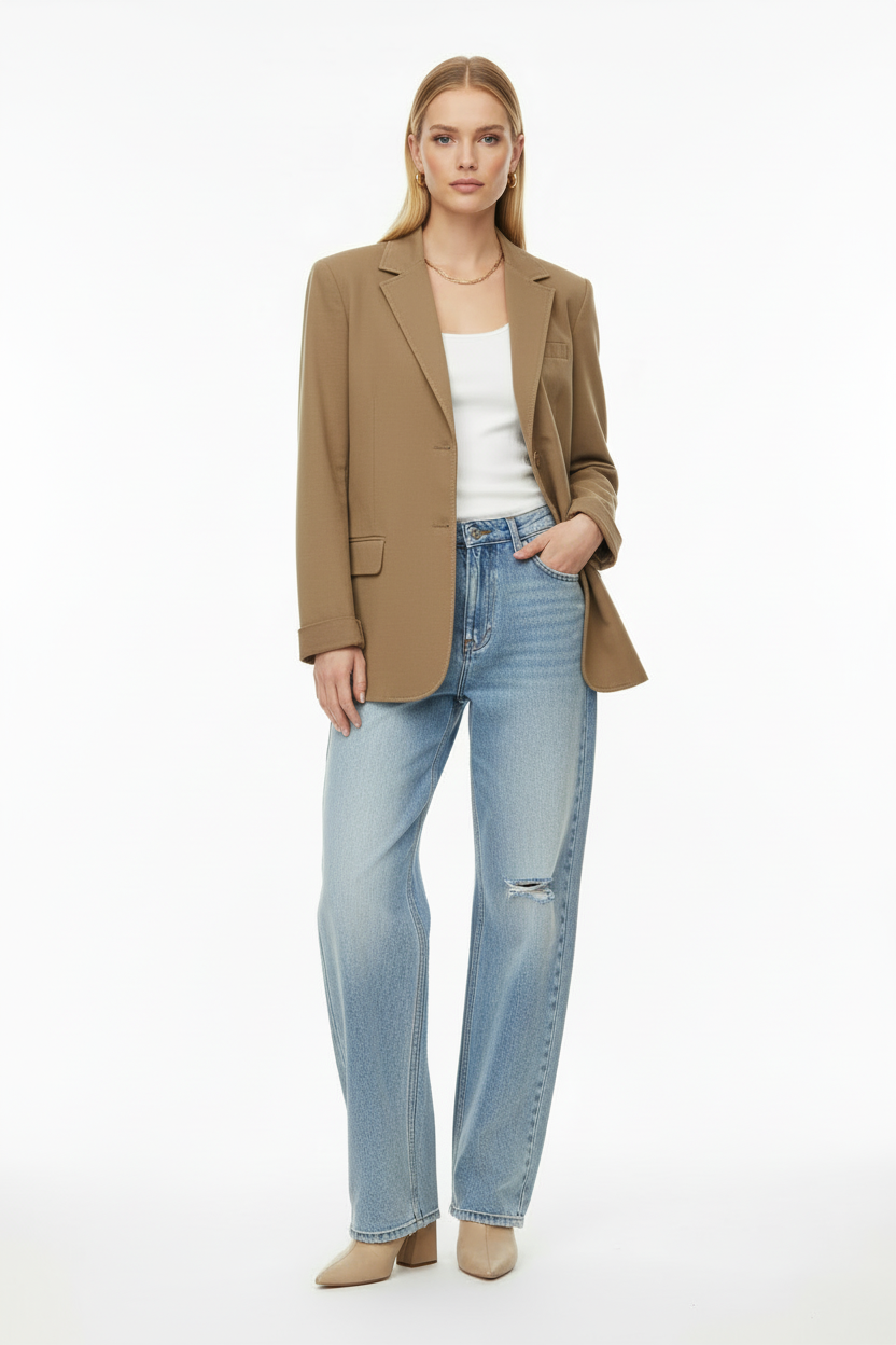 גזרה נוחה עם מבנה קליל המאפשר ללבוש אותו על טופ ללוק יומיומי.