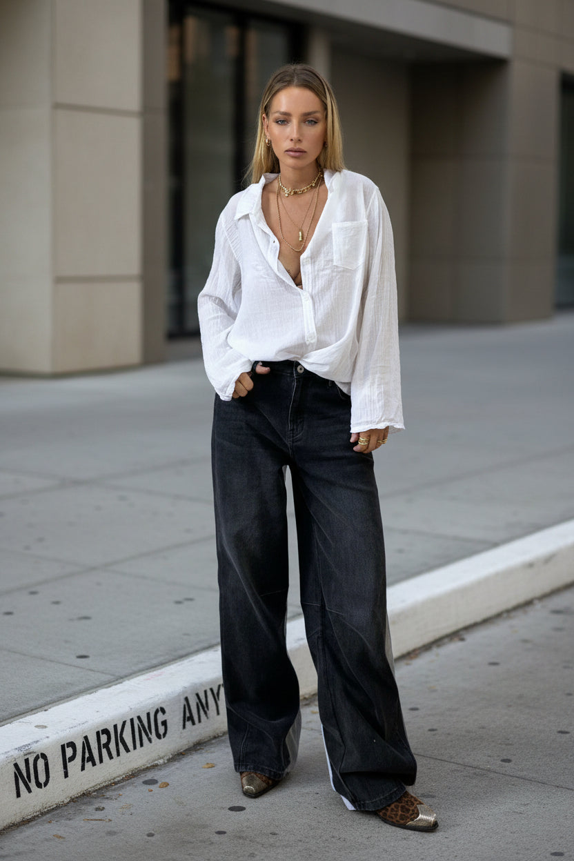 D Black wide denim