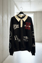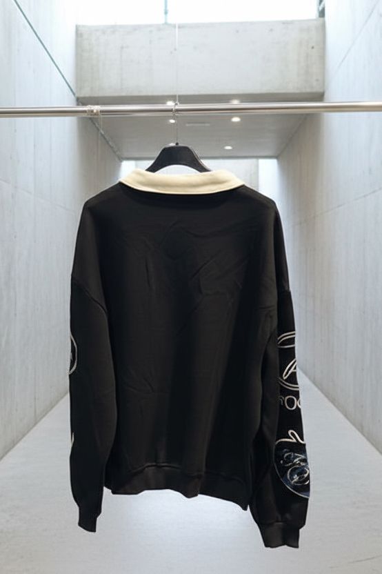 חולצת רוגבי ייחודית בגזרת אוברסייז, עם צווארון קלאסי ורוכסן קצר בחזית.