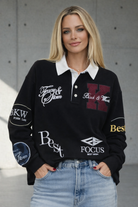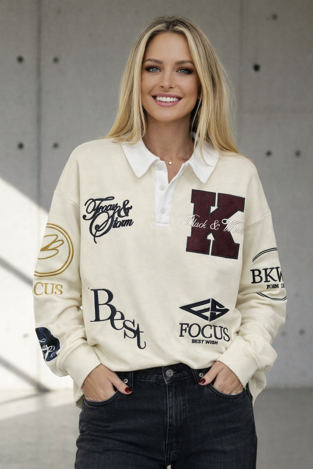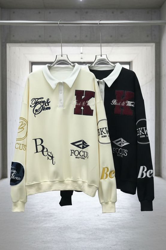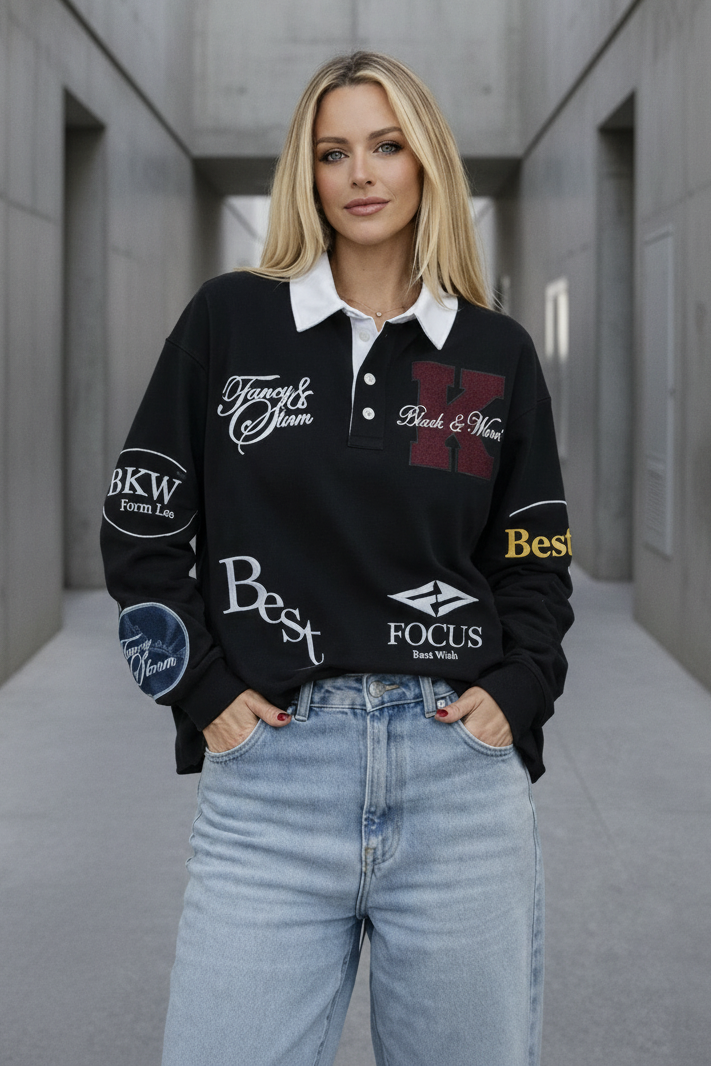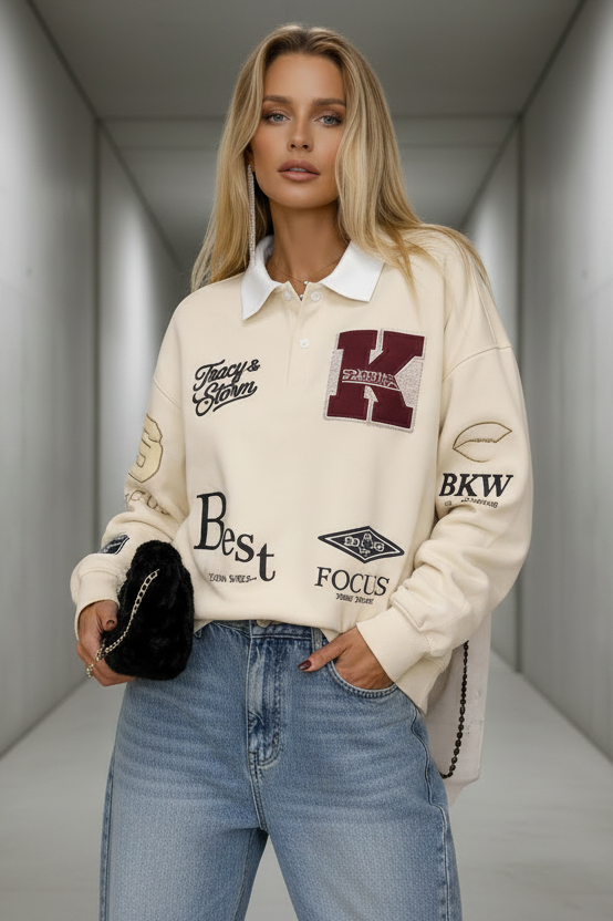 סווטרט רוגבי אוברסייז עם אפליקציות רקמה
